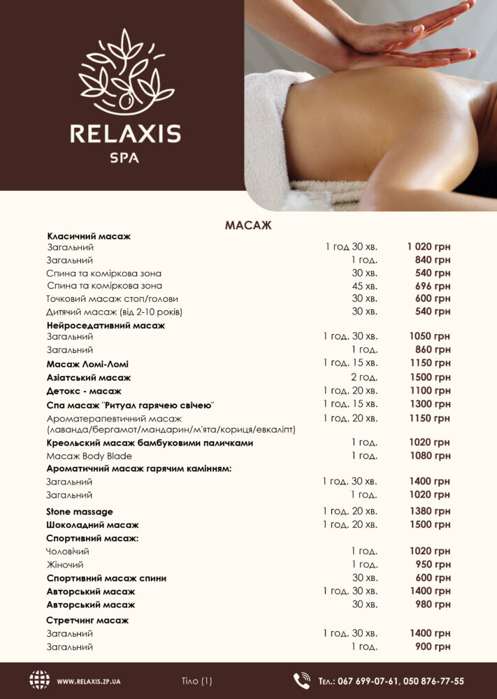 In the RELAXIS salon are collected only the most highly effective massage techniques: